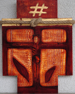 Im oberen Bereich der 14 Bilder finden wir ein Doppelkreuz, ein Rautekreuz oder wie in den sozialen Medien und im Internet verwendetes „Hashtag“. Dort dient ein Hashtag dazu um gleiche oder ähnliche Inhalte besser auffindbar zu machen. Dieses Zeichen drückt somit meine Intention aus: Gleich oder ähnlich Ungelöstes/Verknotetes im eigenen Leben zu finden und mit dem Glauben und der Botschaft Jesu zu konfrontieren, zu verbinden und vielleicht dadurch ein Stück weit Heilsames zu erfahren. Aus diesem Grund wurde auch eine sogenannte 15 Station gestaltet - mit dem Titel „Jesus wird von Gott auferweckt - hinein in die Fülle des Lichtes und des immerwährenden Lebens...“